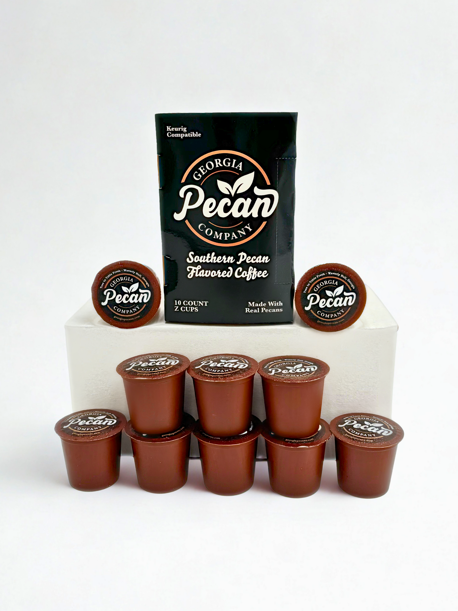 Indulge in the rich, nutty aroma and smooth taste of our Pecan-Flavored Coffee with Georgia Pecan Company’s K-Cups. Each box contains 10 single-serve pods, perfectly blended with premium Ecuadorian coffee and our very own "Tree To Table Fresh" pecans.