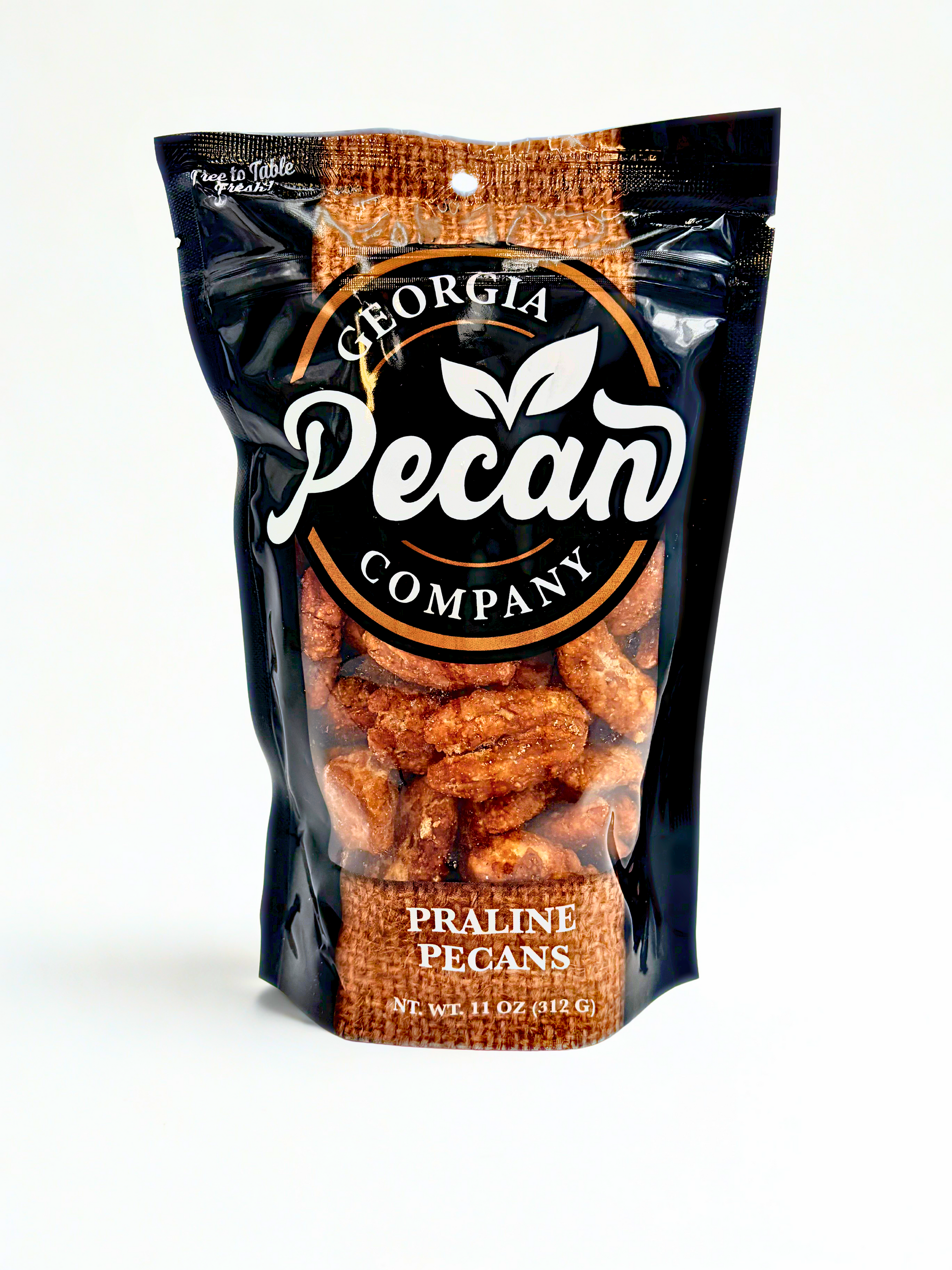 Get ready to go nuts with our 11oz Praline Pecans! These Georgia pecans are drenched in a buttery praline coating that's so good, it should come with a warning. Perfect for snacking, gifting, or impressing your taste buds. One bite and you'll be hooked – guaranteed to make your day nuttier! 🥜😋